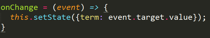 + onChange là một function giúp thay đổi giá trị chính là term. Khi chúng ta thay đổi giữ liệu là state thì ta cần gọi đến hàm this.setState để thay đổi giá trị.